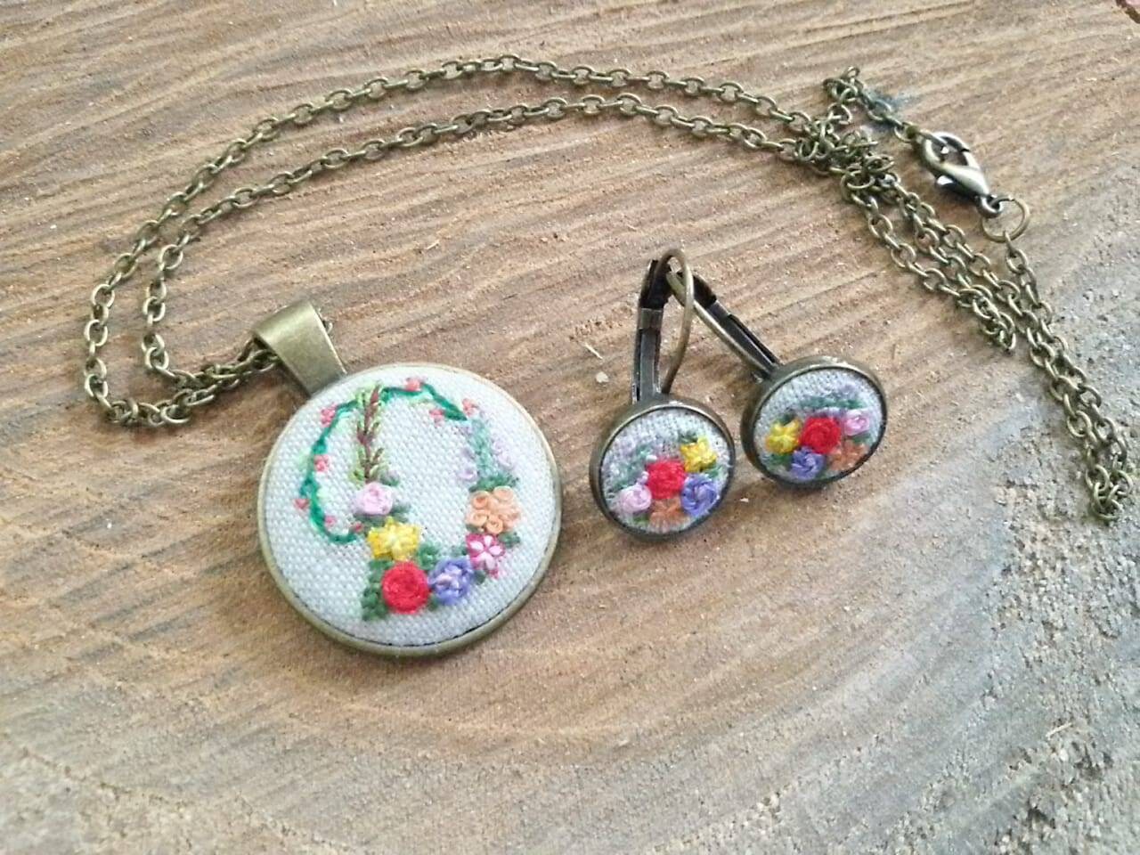 Hand Embroidery Jewelry Set Initial Embroidered Necklace And Etsy Uk
