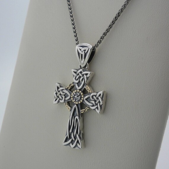 Small Sterling Silver 10k Celtic Cross Pendant With White Etsy Uk