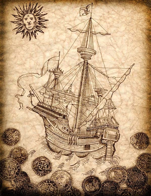Pirate Ship Art Print 11 X 14 Spanish Galleon With Treasure Etsy Uk